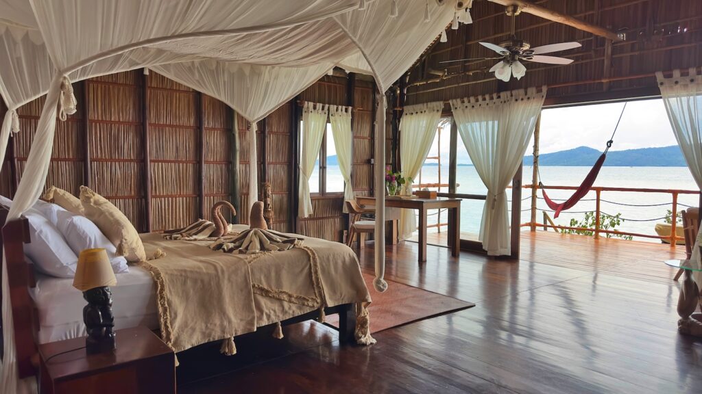 Two Superior Bungalows and Two Deluxe Bungalows are available – Deluxes have a larger room footprint, and may have access to an intermediate ‘lounge’ area between deluxes