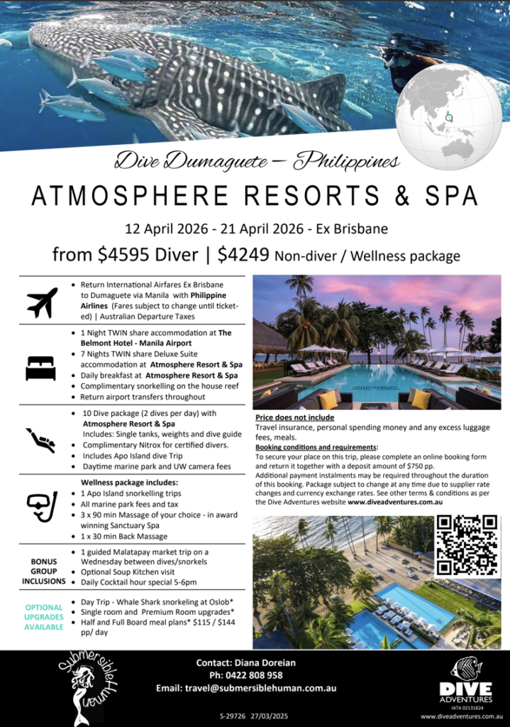 Additional payment instalments may be required throughout the duration of this booking. Package subject to change at any time due to supplier rate changes and currency exchange rates. See other terms & conditions as per the Dive Adventures website www.diveadventures.com.au